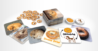 Who knew sleeping dogs and bagels could have such striking similarities? Flip cards fast and be the first to call out “Beagle” or “Bagel” depending on which one is showing the most on the table… after a while you won’t know if you are looking at a furry friend in a ball, or a yummy bread roll! This goofy card game offers 3 ways of playing to challenge your visual perception in fun and unpredictable ways!