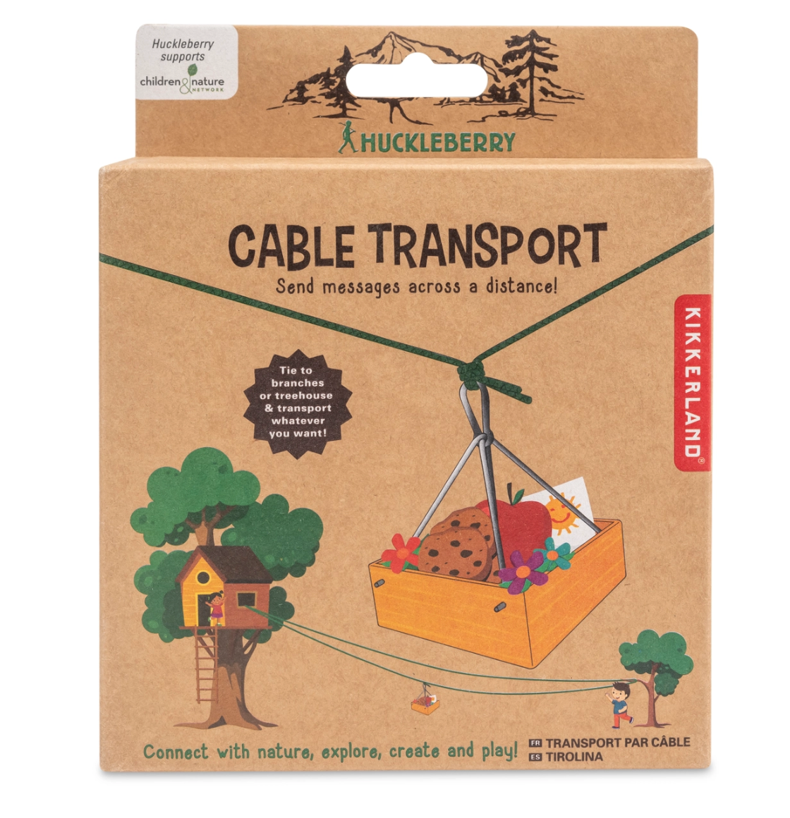 The cables can attach to trees, tables or posts. Fill the basket with your favorite toys or objects! Friends can transport items from one side to the other.