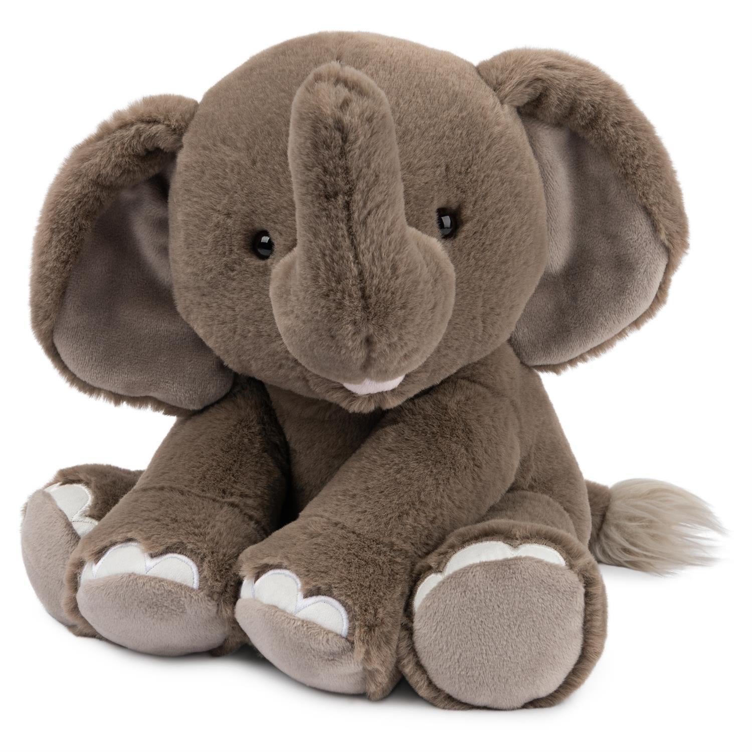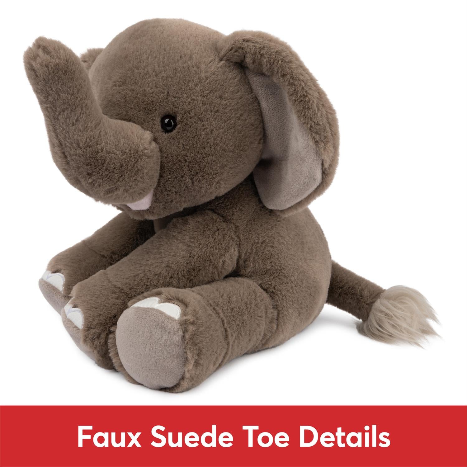 Chai is a whimsical elephant with a winning smile that will melt your heart! This adorable plush stands 10 tall and boasts soft, short gray plush with Chai sitting in an upright pose, his mouth open with a delighted expression