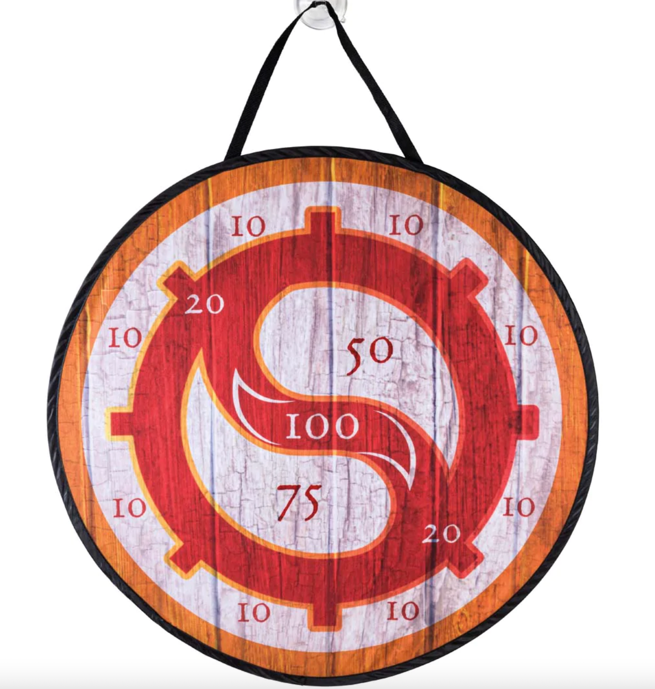 Introducing the third item in Toysmith signature Warrior's Mark series. Inspired by ancient chakram, these throwing rings strike true with each well-aimed toss. Includes 26 inches diameter easy-fold target, two foam throwing blades, suction cup, door hanger, storage bag and instructions. 6yrs and up