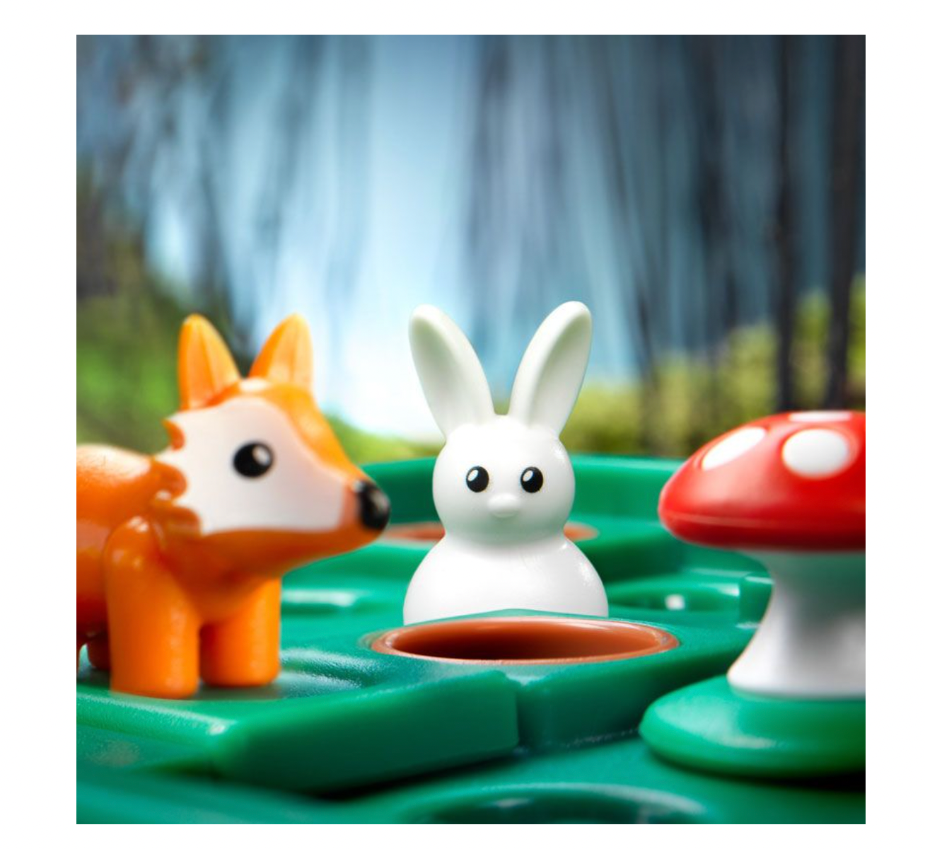 Can you help the rabbits jump to safety? Use other rabbits, mushrooms and even the moving foxes to jump around and hide the rabbits in their holes. A great travel game that features 60 challenges and a portable carrying case.
