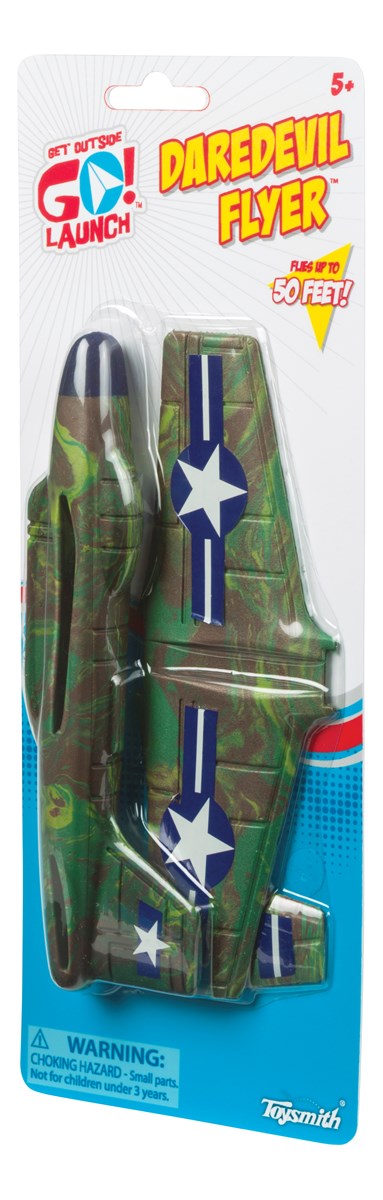 Experience the thrill of flight with the Daredevil Flyer from Toysmith. This toy plane is designed for the young aviators aged 5 and above. Assemble the 8 pieces and watch it soar up to 50 feet, creating a spectacular display of aerodynamics. Let your child's imagination take flight with this fun and interactive toy.