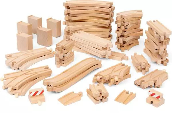 Expand your BRIO World train sets with the 36030 Deluxe Track Pack. This train track expansion pack is full of different wooden railway pieces and gives children the opportunity to build all types of layouts - from a basic circle set to complicated designs stretching across different heights. Use combinations of straights, curves, switches, stops, ramps, ascending tracks and supports to come up with your own designs or simply follow the layout suggestions included.