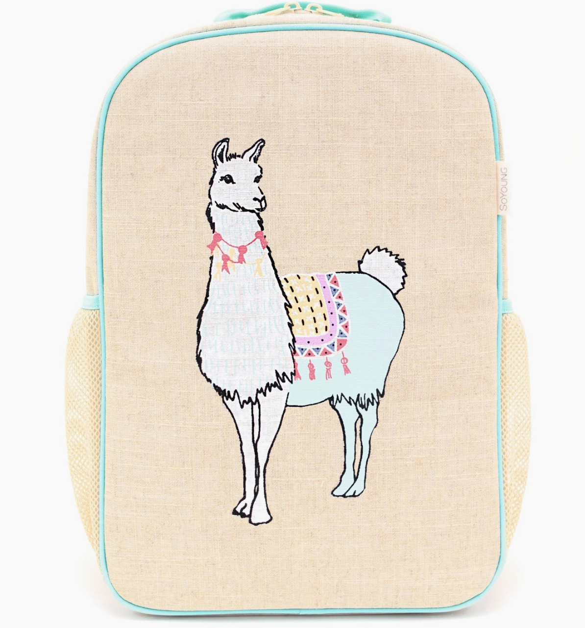 he Grade School Backpack is bound to make first days at school that much more exciting! When spills happen, our machine-washable raw linen makes cleaning hassle-free. You can count on our dangerously cute Blue Dino T-Rex to be your faithful protector and best buddy all in one! List of Features Linen/Cotton exterior fabric Machine washable (gentle cycle, cold) - No dryers please Recommended for Children aged 6 - 11 2 stretchy mesh side pockets Lined nylon interior with zippered mesh pocket Reinforced bottom to protect material and longevity Chest strap with clip for added security PVC, Phthalate, Lead and BPA Free Dimensions: 11"L X 5.5"W x 15.5"H