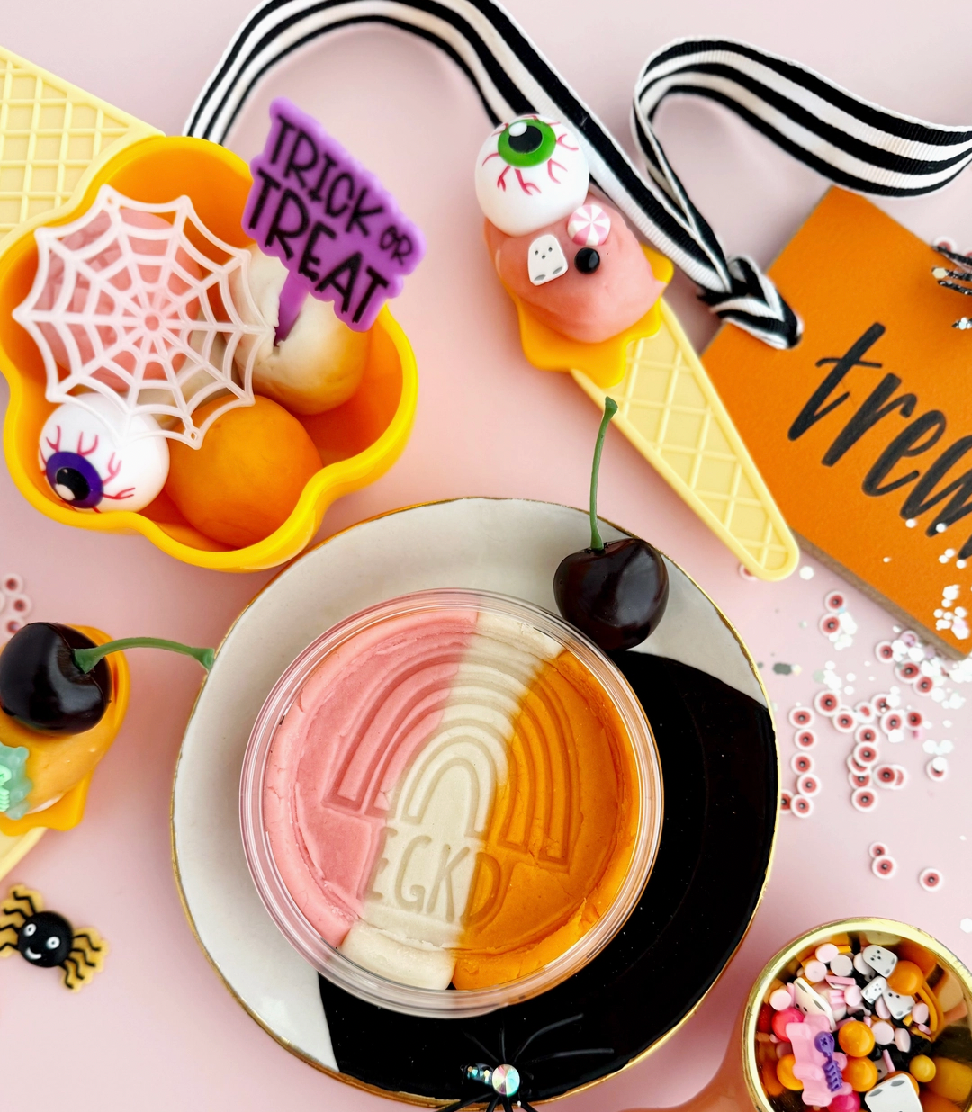 Includes: 8 oz Spooky Sherbet KidDough, Ice Cream Cone and Spoon, Spooky Mix Ins and Toppings