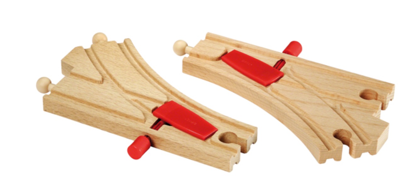 Reversible track segments for making right or left turns, perfect for battery operated locomotives