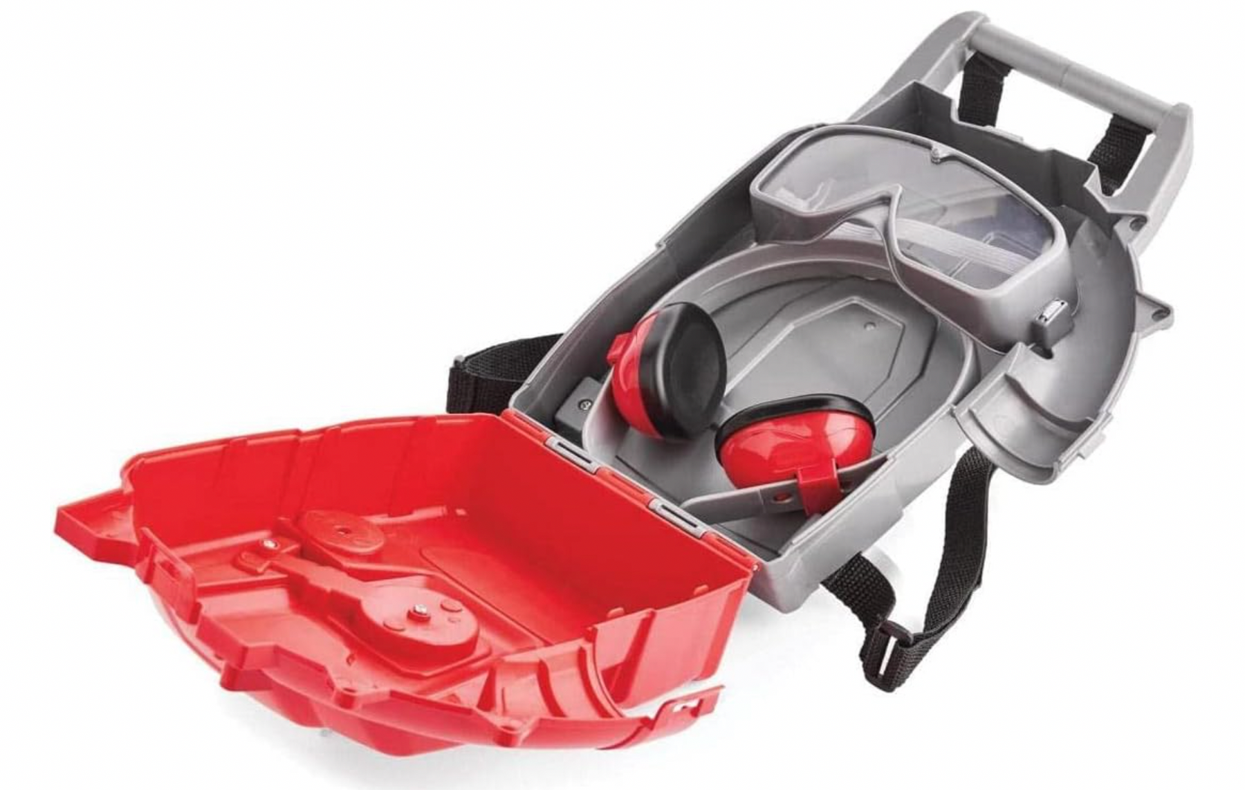 With the Kidoozie Just Imagine Backpack Leaf Blower, your child can pretend to clean up the yard just like mom & dad! Included are your goggle and earmuffs to ensure you have all the necessary tools. Simply adjust the backpack straps to ensure the backpack sits securely on your back. The flexible adjustable tubing allows you to adjust the handle as needed for your height. Simply squeeze the trigger and watch the balls spin in the tube to simulate the air blowing. The leaf blower backpack actually opens up to provide you with storage space for your goggles & earmuffs or anything else you may want to take with you. Product Specifications: Set includes battery operated backpack leaf blower with blowing action & sound. Also includes accessory goggles and earmuffs. Recommended for children ages 3+. Requires 3 x AAA batteries (included).