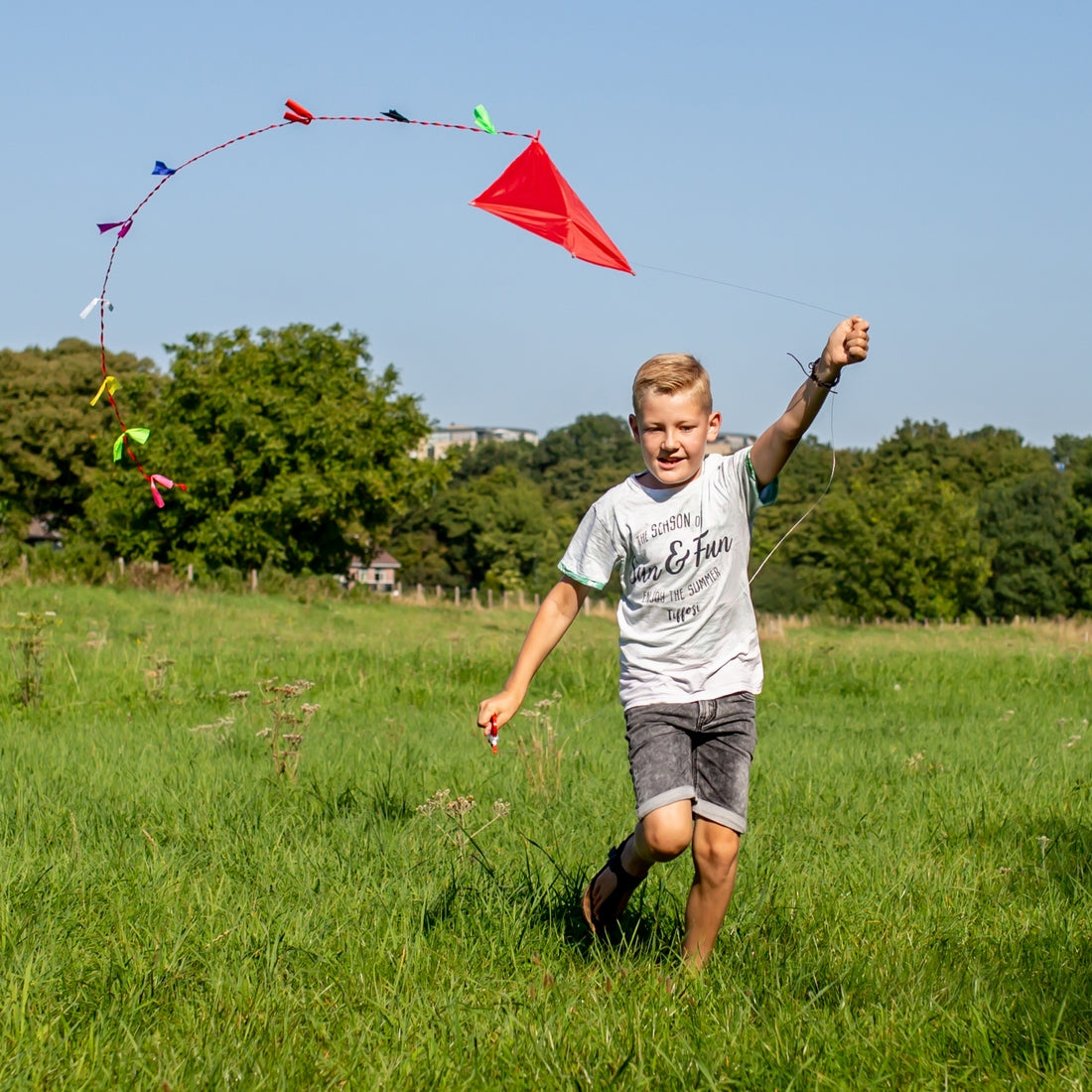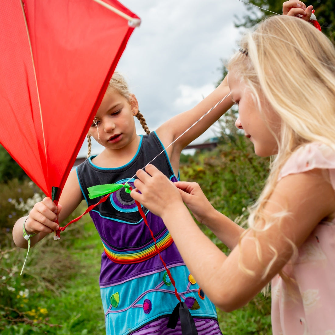 What better way to enjoy the outdoors on a windy day than to have a Huckleberry Red Kite go sailing overhead into the blue sky! Go on an adventure outdoors and watch your Huckleberry Red Kite flow through the breeze for hours of fun.