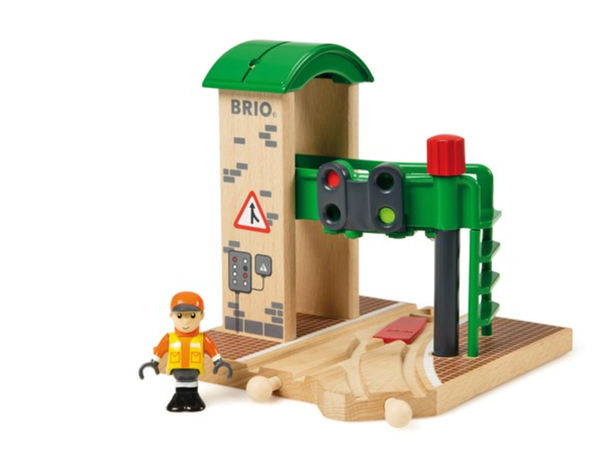 Decide which way the passing trains go. Turn the red knob to choose the right track as the BRIO trains fly by fast, hurrying to get to their next destination on time. Poseable play figure included.