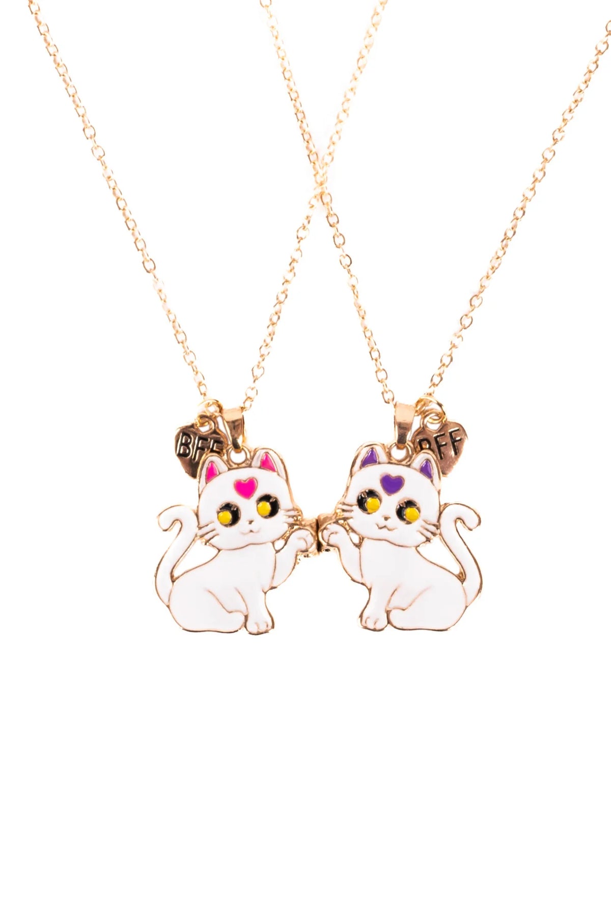 Smitten Kitten Tear & Share Necklaces come as a pair of white kitten pendants, each accented with pink or purple hues. When the necklaces come together, the kittens appear to hold hands, a charming symbol of friendship and togetherness. Lightweight and comfy for everyday wear, these necklaces are perfect for sharing with your closest friend or sibling.