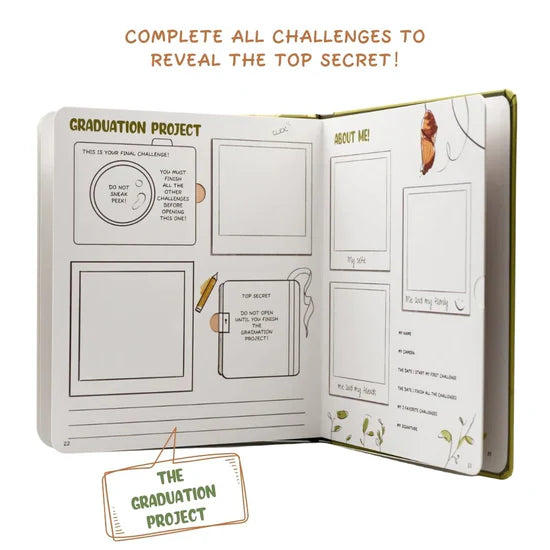 The child will first guess and then peel the flap to reveal their challenge. While no order is required, they cannot move forward until the activity is finished and they have documented their journey with pictures.