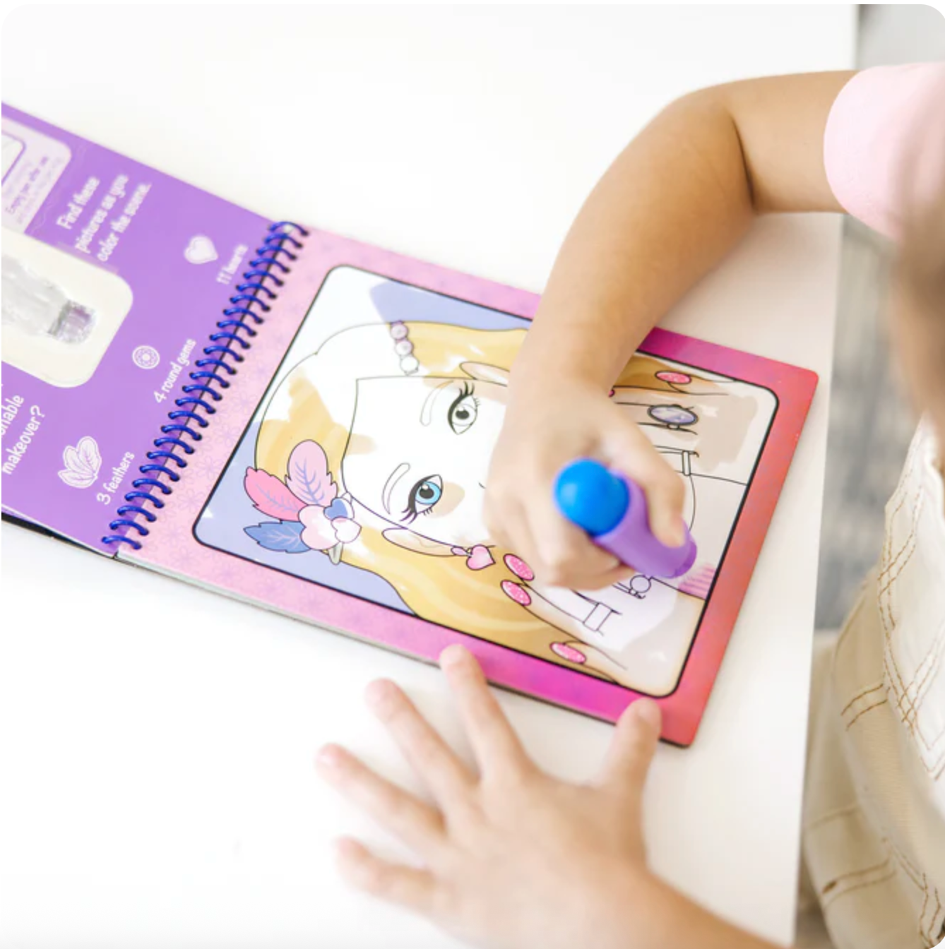 Each spiral-bound pad has 4 reusable pages and water pen that stores in cover, making these a great travel activity