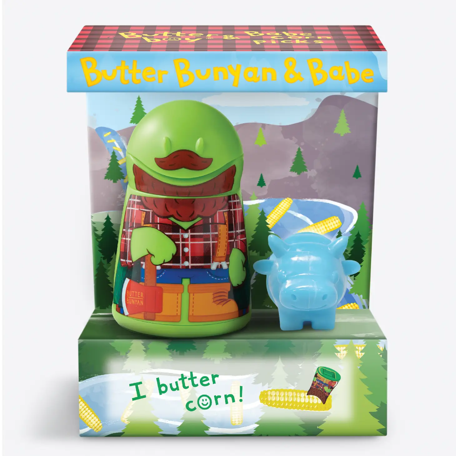 Butter Bunyan is here to join your sweet corn tales along with his trusted sidekick, Butter Babe corn picks and creates good, clean fun! Use Butter Bunyan to butter corn on the cob. Avoid both wasting butter and creating a buttery mess.