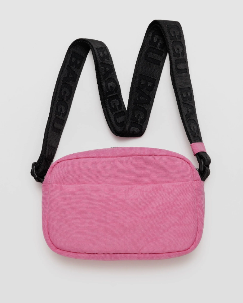 A sporty, slightly structured heavyweight nylon bag with an adjustable strap.