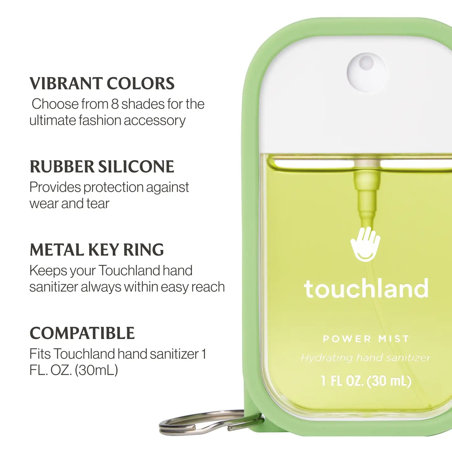 The perfect accessory for your Touchland hand sanitizer, this stylish rubber-silicone mist case offers durable protection against wear and tear. DELIGHT IN THE DETAILS: - Vibrant Colors – Choose from 8 shades for the ultimate fashion accessory. - Rubber Silicone – Provides protection against wear and tear. - Metal Key Ring – Keeps your Touchland hand sanitizer always within easy reach. - Compatible – Compatible with Touchland hand sanitizer 1 FL. OZ. (30mL) COMPOSITION AND CARE: - To clean the Touchland hand mist case, just wipe with a warm washcloth. - Rubber silicone - Zinc alloy metal keyring *Hand Sanitizer not included