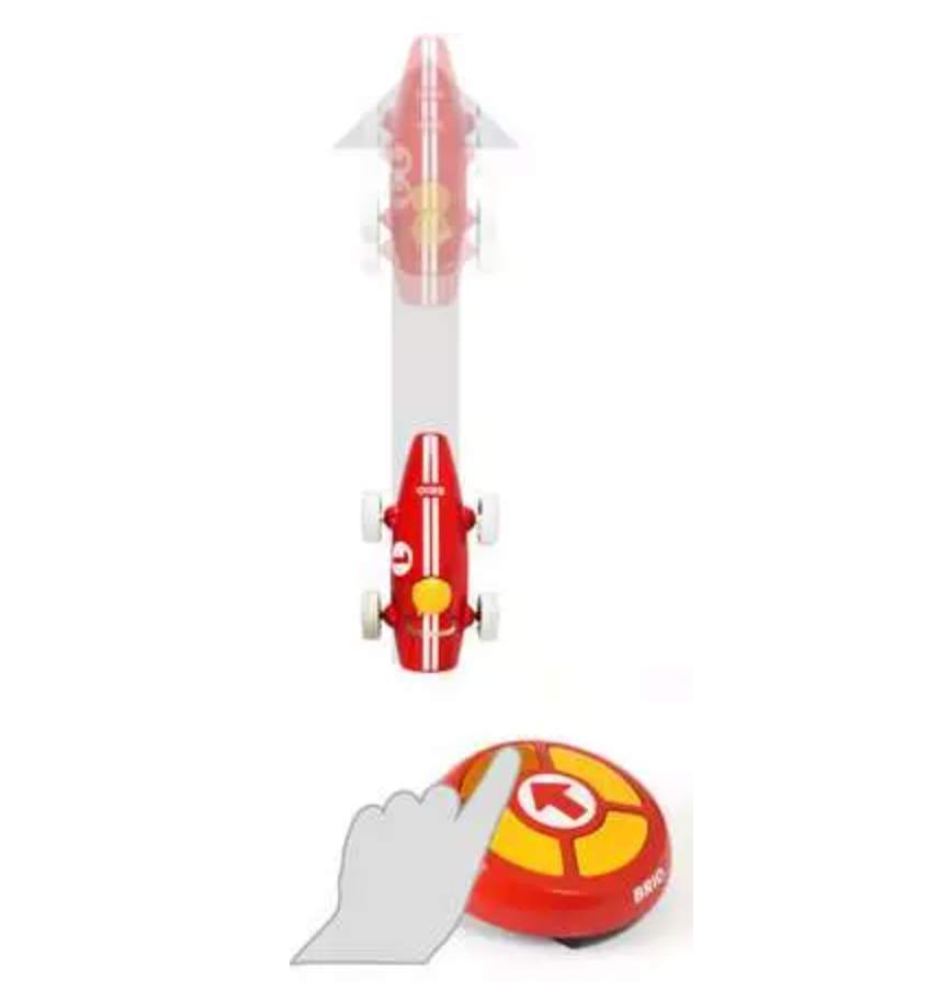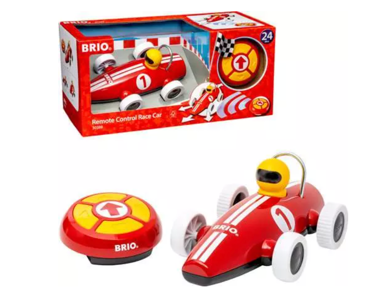 A motorised classic: The Remote-Control Race Car is a motorised version of the classic BRIO Race Car, with a simple remote making steering easy and exciting for even the youngest Formula 1 driver.