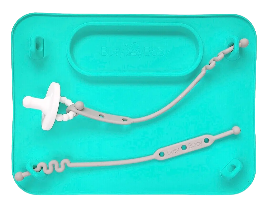 End the Toddler Toss with the FIRST-EVER non-slip kid's placemat engineered to keep toys in place! This children's placemat comes with two light grey toy straps to keep toys within your child's reach and free from germs! Travel sleeve included. Made with food-grade silicone, this placemat contains no Phthalates, BPA, BPS, or PVC. This mat measures 8.5" x 11.5" or roughly the size of a sheet of paper.