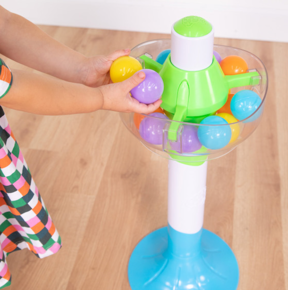 Includes one tower, 16 colorful balls