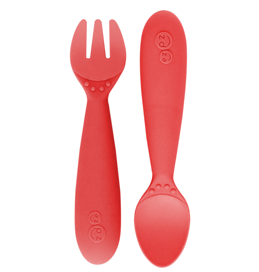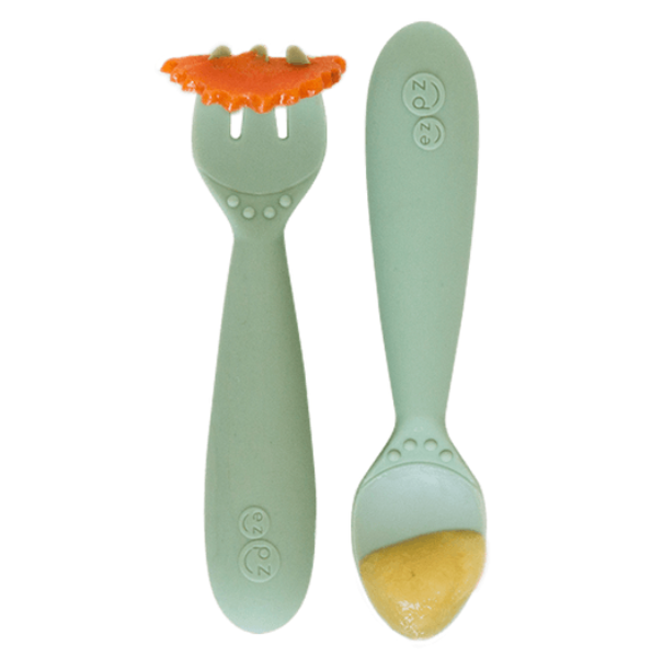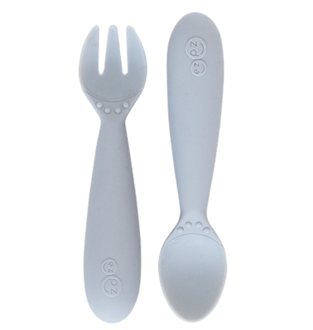 The perfect First Utensils! Learning to self-feed is an important developmental milestone, and the ezpz Mini Utensils are designed to help toddlers learn how to eat with a spoon (scooping) and fork (piercing).These utensils help develop fine motor skills and encourage independent feeding.
