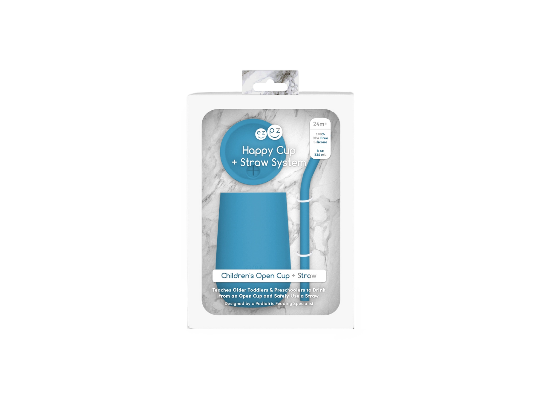 Learning to drink from a straw is an important developmental milestone that develops lip rounding and promotes speech development. The ezpz Happy Cup + Straw System teaches older toddlers and preschoolers to safely drink from an open cup and straw independently. 24 months+