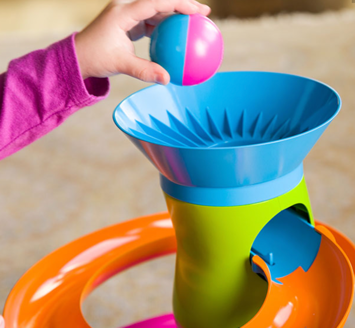 - Drop the ball into the funnel at the top, lift the next ball to do it all over again