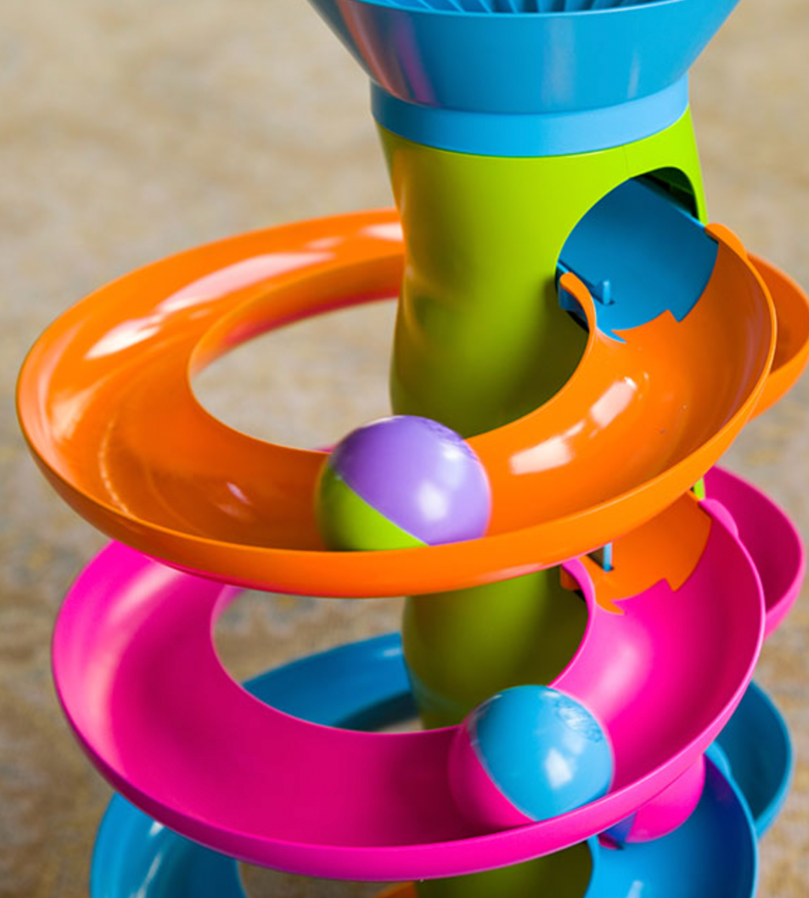 Curiosity develops into hours of cause-and-effect learning and discovery when little ones start exploring the vibrant and fascinating RollAgain Tower.