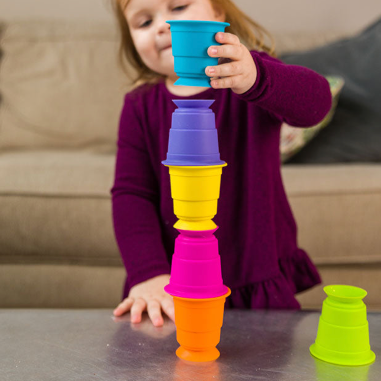 Each of these six colorful, squishy cups features a suction cup on the bottom, a suctioning brim at the top, plus endless creative-play possibilities all around.